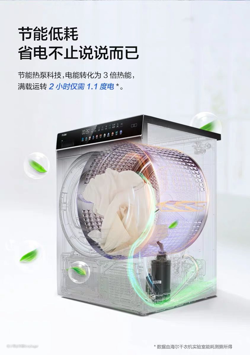 上面提到的节能,怎么说呢,可能你用到热泵洗衣机退休省下来的电费水费也不够同品牌的冷凝式烘干机差价。只能说真正对衣物烘干效果有追求的,金贵衣物比较多的你还是首选吧。