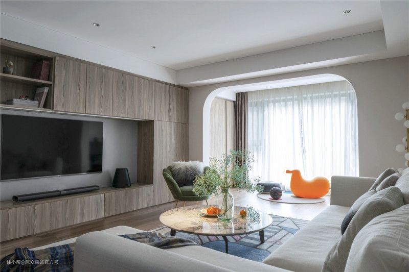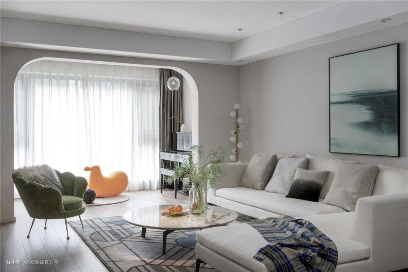 硬装配色对室内采光的影响非常大,有些房子本来采光虽然不算明亮但也还可以,却被硬装配色耽误了,选用深色墙面、暗色地板,反而让家里成了小黑屋。要想改善客厅采光,就得选择浅色系的硬装配色,比如简洁的大白墙、温馨的浅米色、明度高的灰白色等等。浅色系的天花、墙面、地面能增加光线反射,让室内显得明亮。如果铺设地砖,建议选择明亮耐磨、反光柔和均匀的地砖,会让室内的整体光线看起来更舒服。