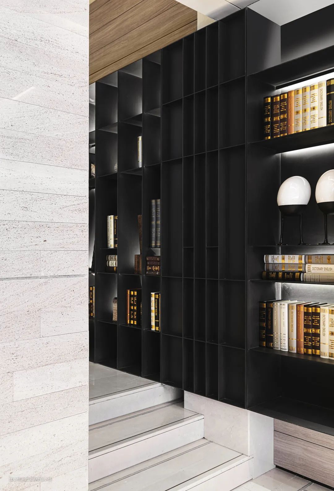 天窗与采光井增添别墅的光影刻度,在复合的光线环境中更显其纯粹珍贵。光路结合动线,流畅舒适的画面让人从容漫步下沉,沐浴光华。