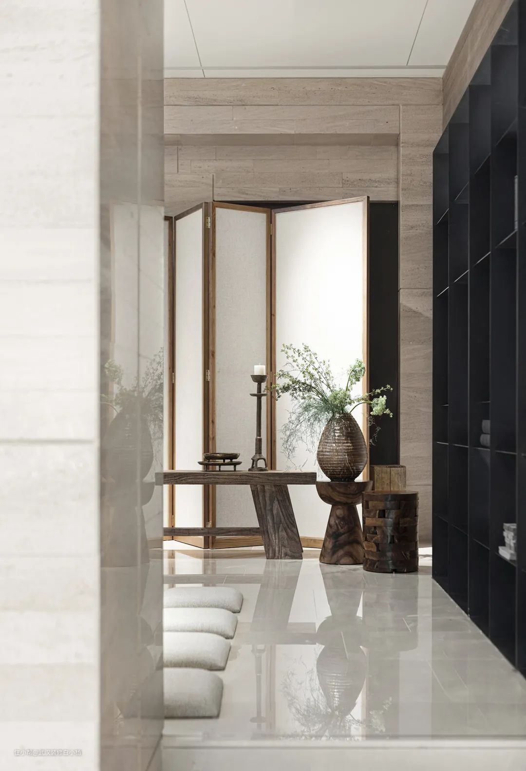 堆叠与留白之间,将自然原始游刃有余地归拢,与人的起居场景并置,让两者互相辉映,相得益彰。