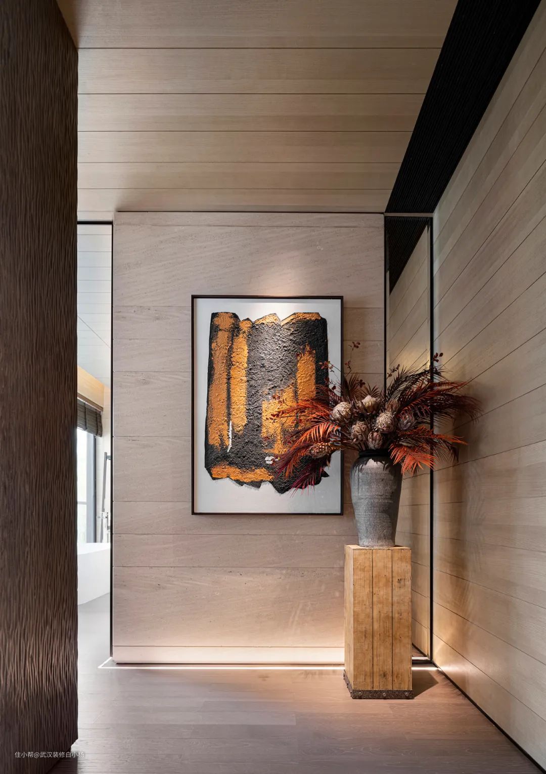 由建筑中空改造而成的女主人衣帽间一改纤柔,充满着戏剧性。在野奢气息衬托下,上载一种久远的情怀,像是与名驹宝马共同演绎的一场盛装舞步,繁简之间,详略之间,言有尽而意无穷。