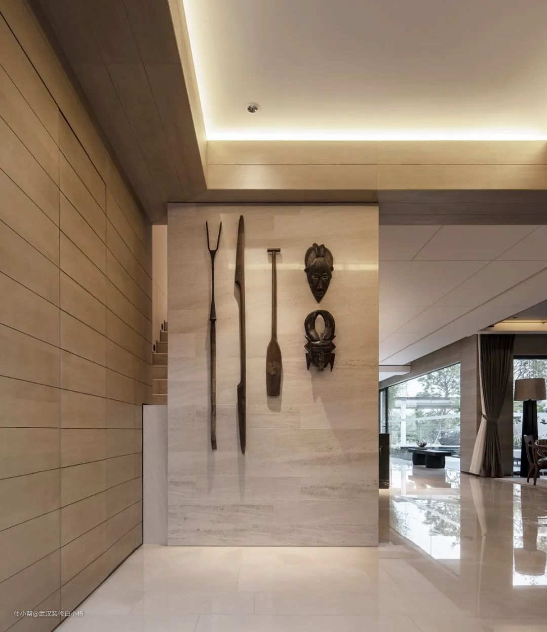 与追求极简的空间不同,琥珀别墅是丰富且有秩序的。充满的异域风情的挂画,遥远文明的形象总是以古朴神秘的姿态出现。一截断木枯枝,一片叶,一枝花,山脉水文皆是采撷之处。