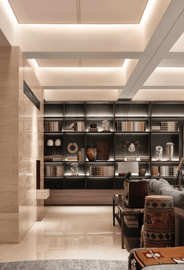 琥珀别墅重新起用这些元素并进行创造性的组合拼接,在收藏展示与舒适居住功能之间拿捏氛围营造,不仅仅是为了复古或是潮流,还为了带回远古的足音,如琥珀般凝固野奢级感官体验。