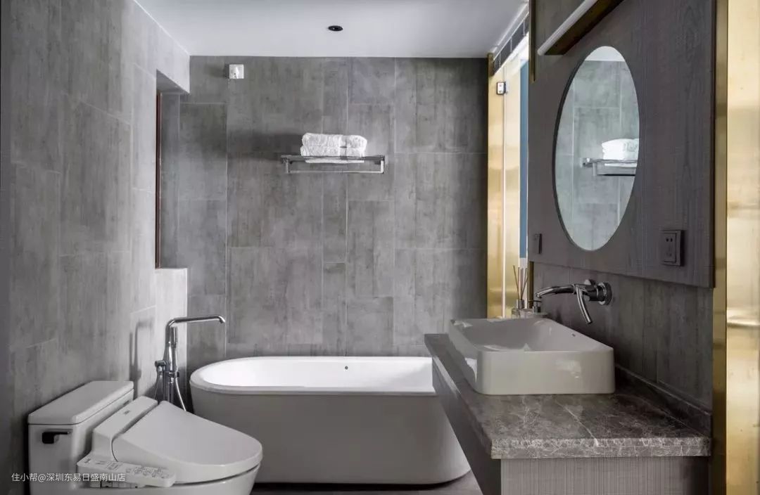 也可以在灰色调的空间中加入木色、粉色等作为调剂,避免通体灰色系看起来太过昏暗一些,细节处做好能让卫生间变得更美。