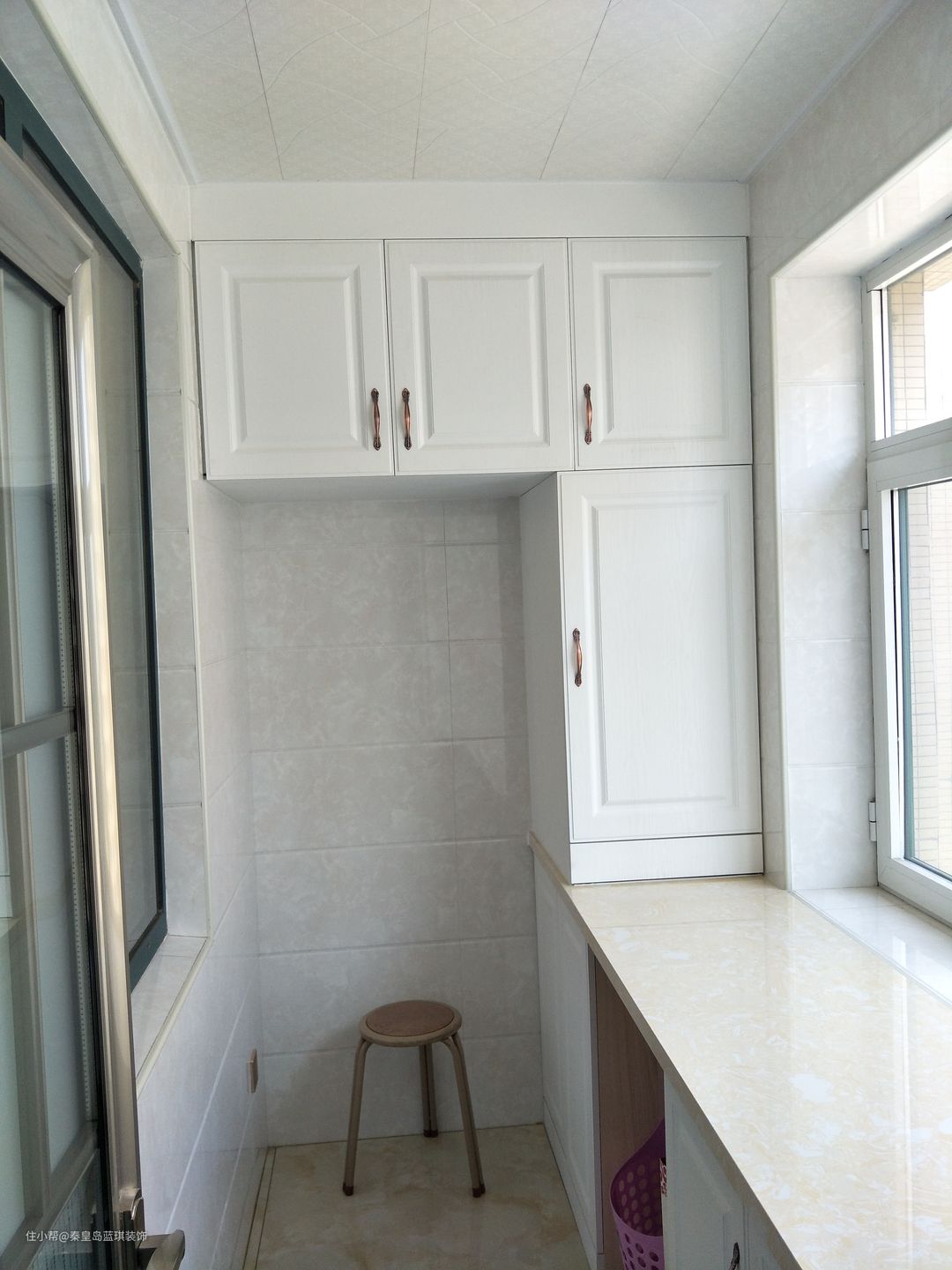 这样的小阳台非常实用,既有储藏柜,也有台面可摆放绿植等物品。