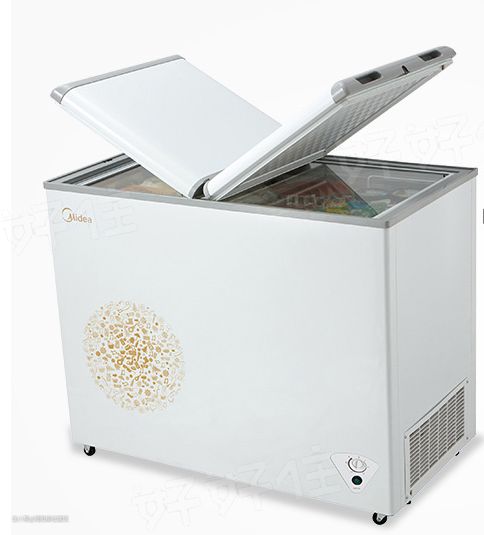 2.卧式冰箱:它的长度方向上尺寸最大,冷冻箱常用卧式的,向上开箱门,可以使漏泄热量减少。但占地面积较大,存取物品不太方便。