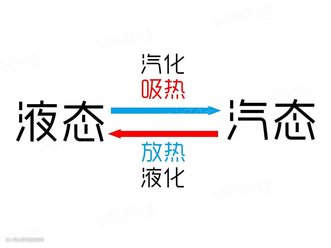 物体从液态转化为汽态的过程叫做汽化,需要吸热。相反的,从汽态转化为液态,叫做液化,需要放热。