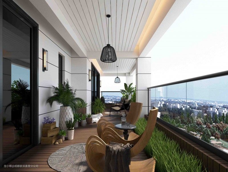 阳台的一端加上屏风隔断,保持空间通透美观,又隔而不断,丰富空间的层次感。