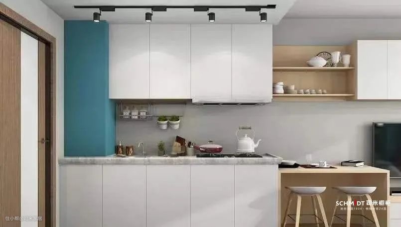 而膨胀色则是柔和的浅色,比如白色、米色、原木色等。就像穿白衣服显胖一样,在厨房中运用膨胀色就能让厨房在视觉上产生膨胀感,显得更大。
