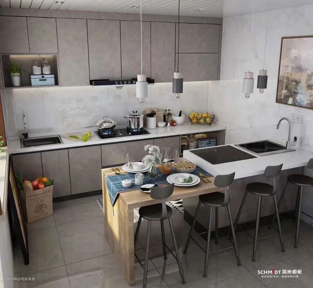 试想一下,如果厨房物品杂乱无章,做饭时油烟油腻,厨房配色阴沉不和谐,怎么会有下厨的欲望呢?更不会想在厨房享受一日三餐。