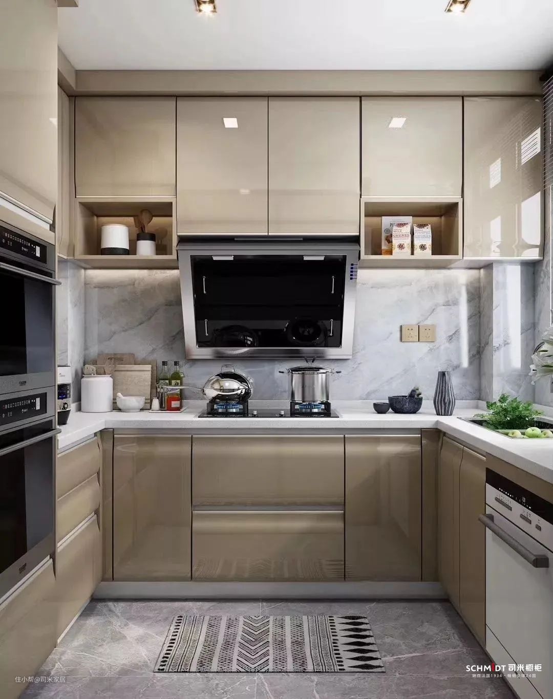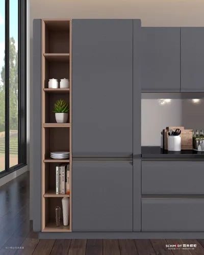 流行色宝马灰与香槟金的搭配,优雅、高级、桀骜,漆面中微透的质感折射出低调沉稳的光泽,让整个厨房空间都散发着独特的魅力。