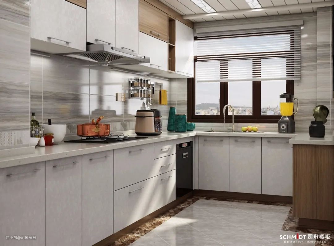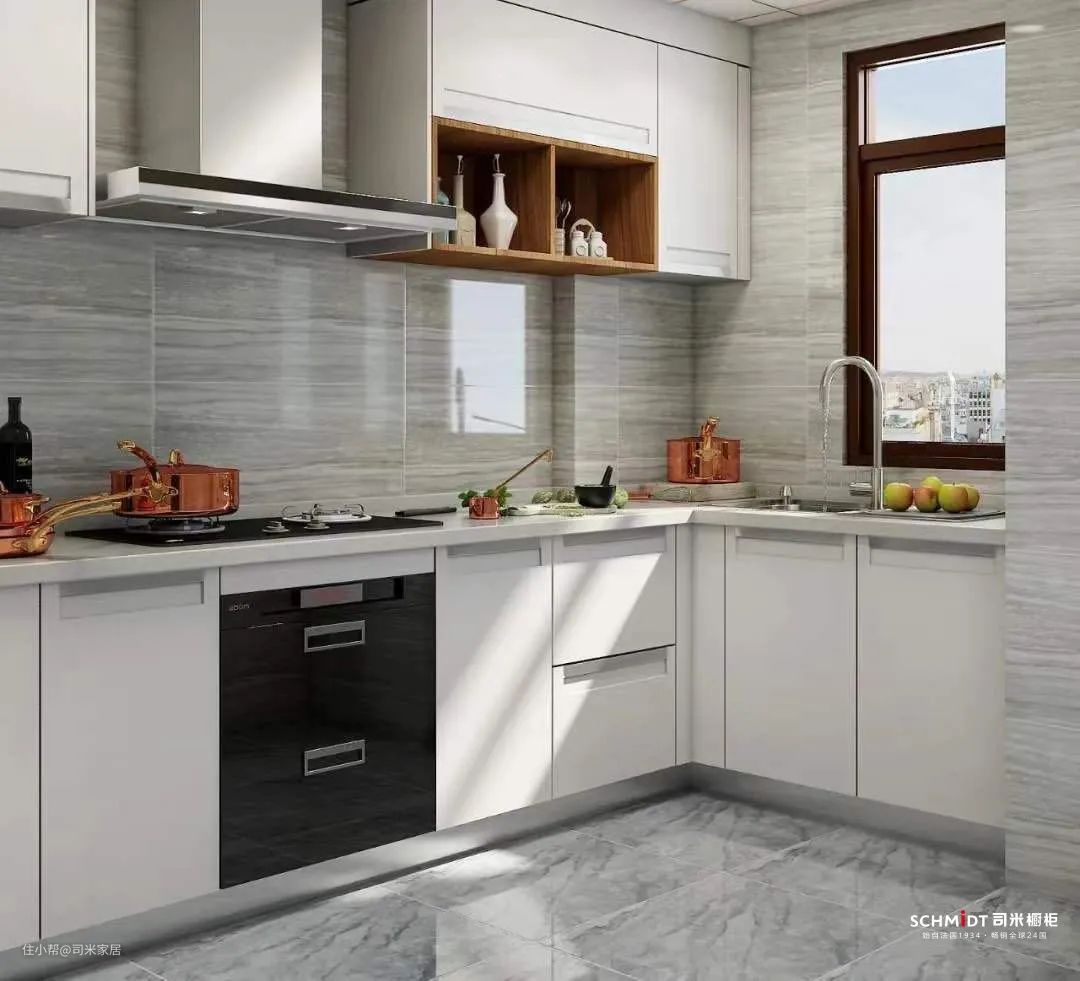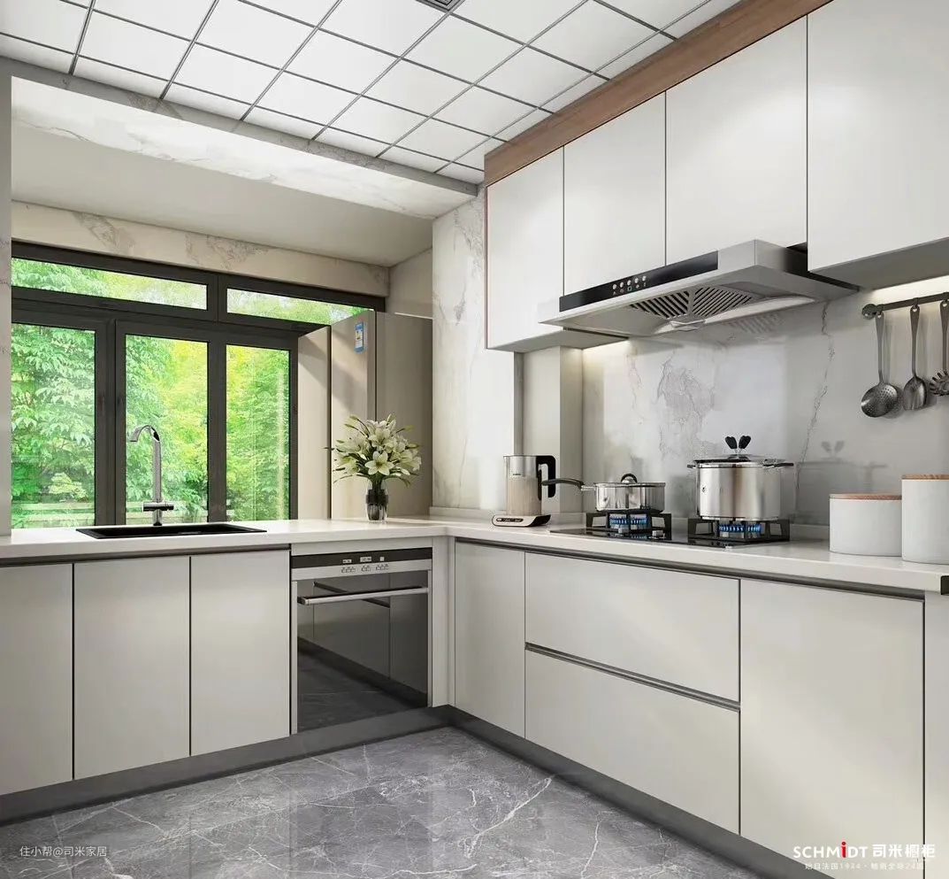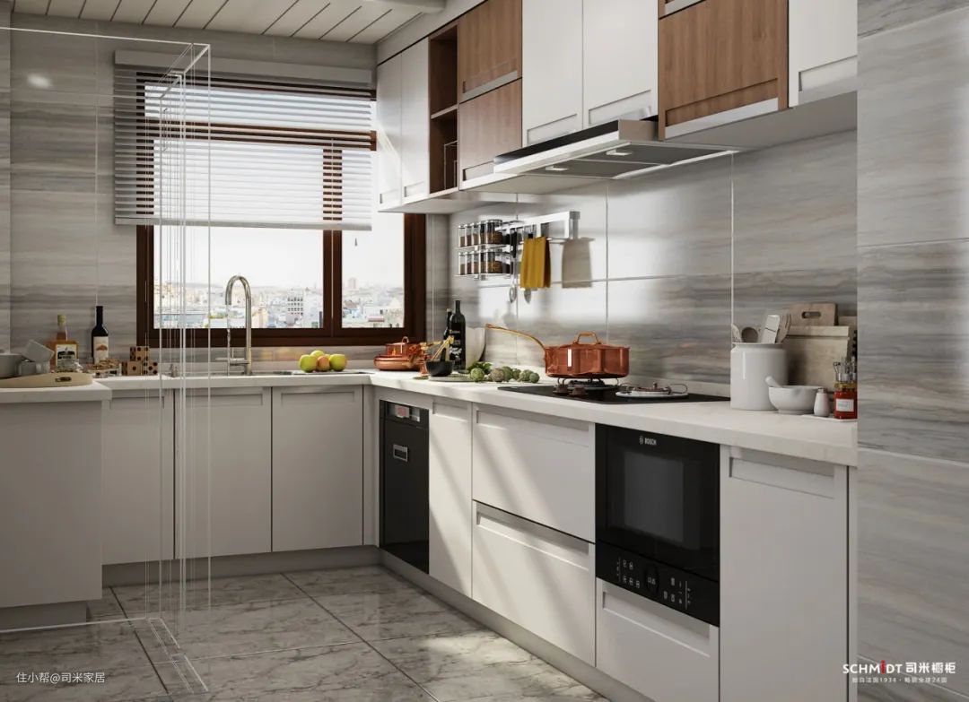 小厨房或者没有窗的厨房可以选择白色来扩容,增加厨房光线。