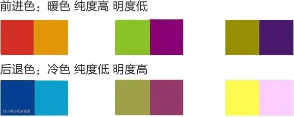 前进色是使人们的视觉距离短,显得突出的颜色,通常是暖色;反之视觉距离远,纯度低,明度高的冷色调通常为后退色。