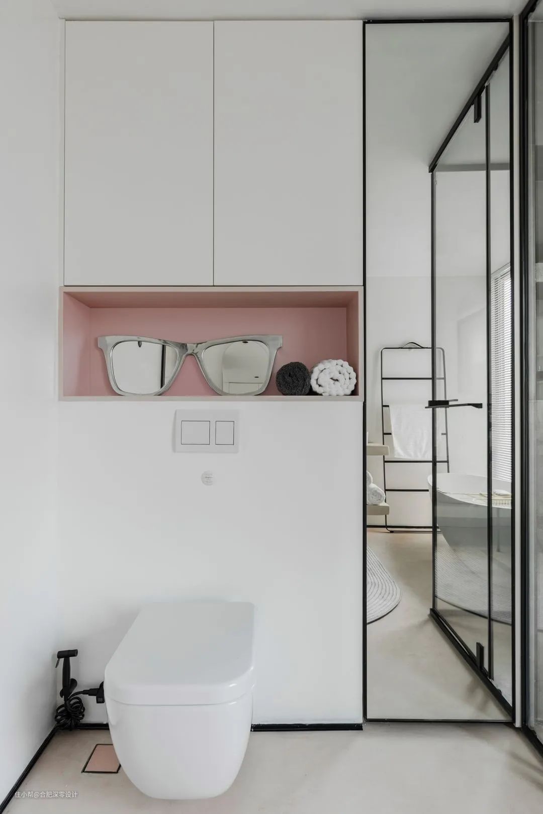 卫生间还有一个颜值强大的存在,大家不要忽略它——玻璃隔断。卫生间较小的情况下,不方便做淋浴房,用一块玻璃来分隔干湿区也是不错的~