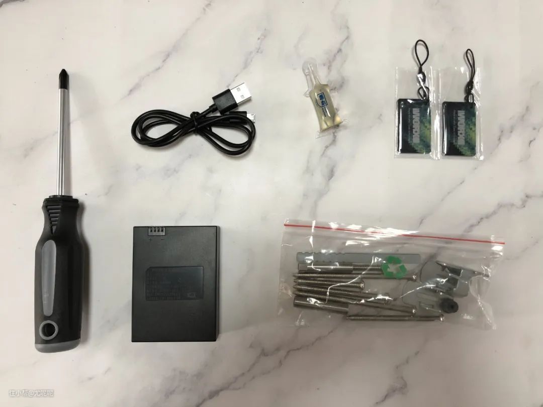 从题目中就可以看出,这款指纹锁最大的优势就是可以快装,所以我就先和大家聊聊这款指纹锁的安装。可以从配件图中看到,这款指纹锁是没有锁芯一起发货过来的,所以这款指纹锁是可以完美匹配原锁芯的,完全不必扩孔或者更换锁芯。