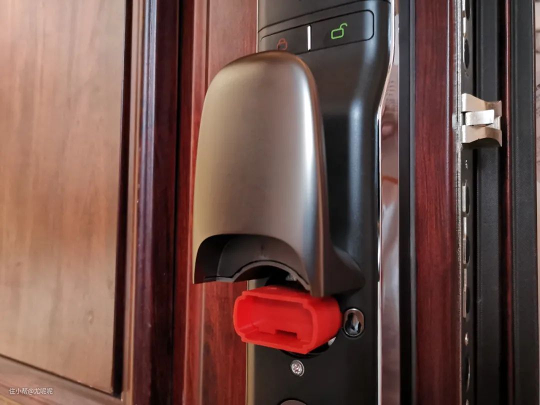 作为指纹锁来说,最常见的锁门方式就是上提门把手,每次锁门需要稍微用点力,否则可能没反锁成功。