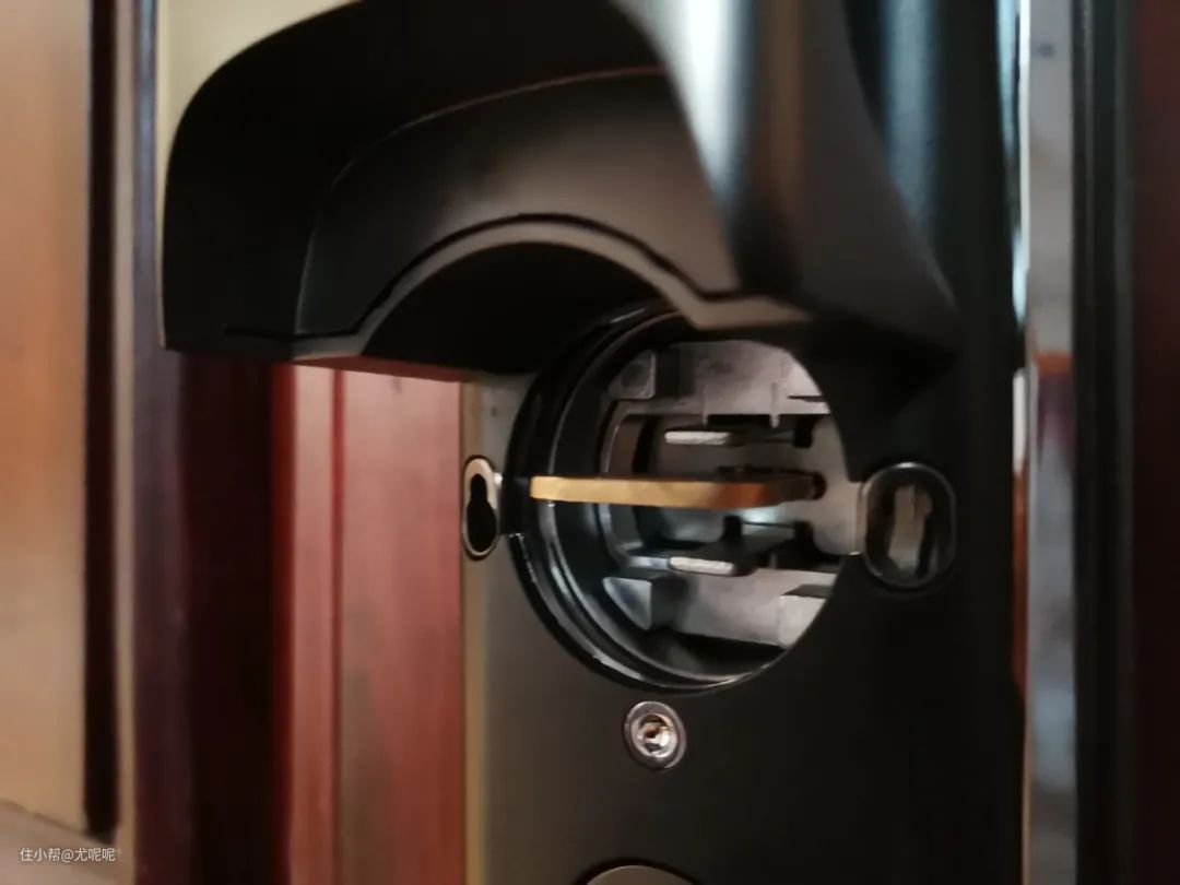 直到安装的时候,我看说明书才发现这款指纹锁,创新性的使用了原锁钥匙来代替方销的作用。只需要把其中一把原锁芯钥匙插入后,然后指纹锁直接控制原钥匙的转动,就可以完美实现使用原锁芯了。