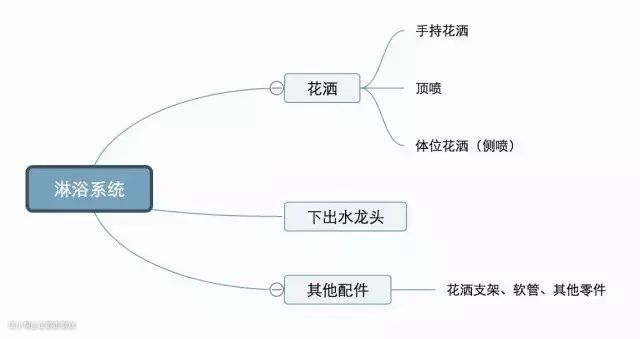 我们今天说的花洒其实不单单指那个喷头,而是指完整的淋浴系统,它包括了三个部分:
