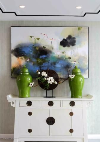 “人闲桂花落,夜静春山空。”诗意的国墨山水凸显了磅礴大气的古典风格,花鸟鱼虫则颇具禅意和趣味性,这类玄关背景挂画可以提升整个空间的气质与品位,让人有一个万事顺遂的家。