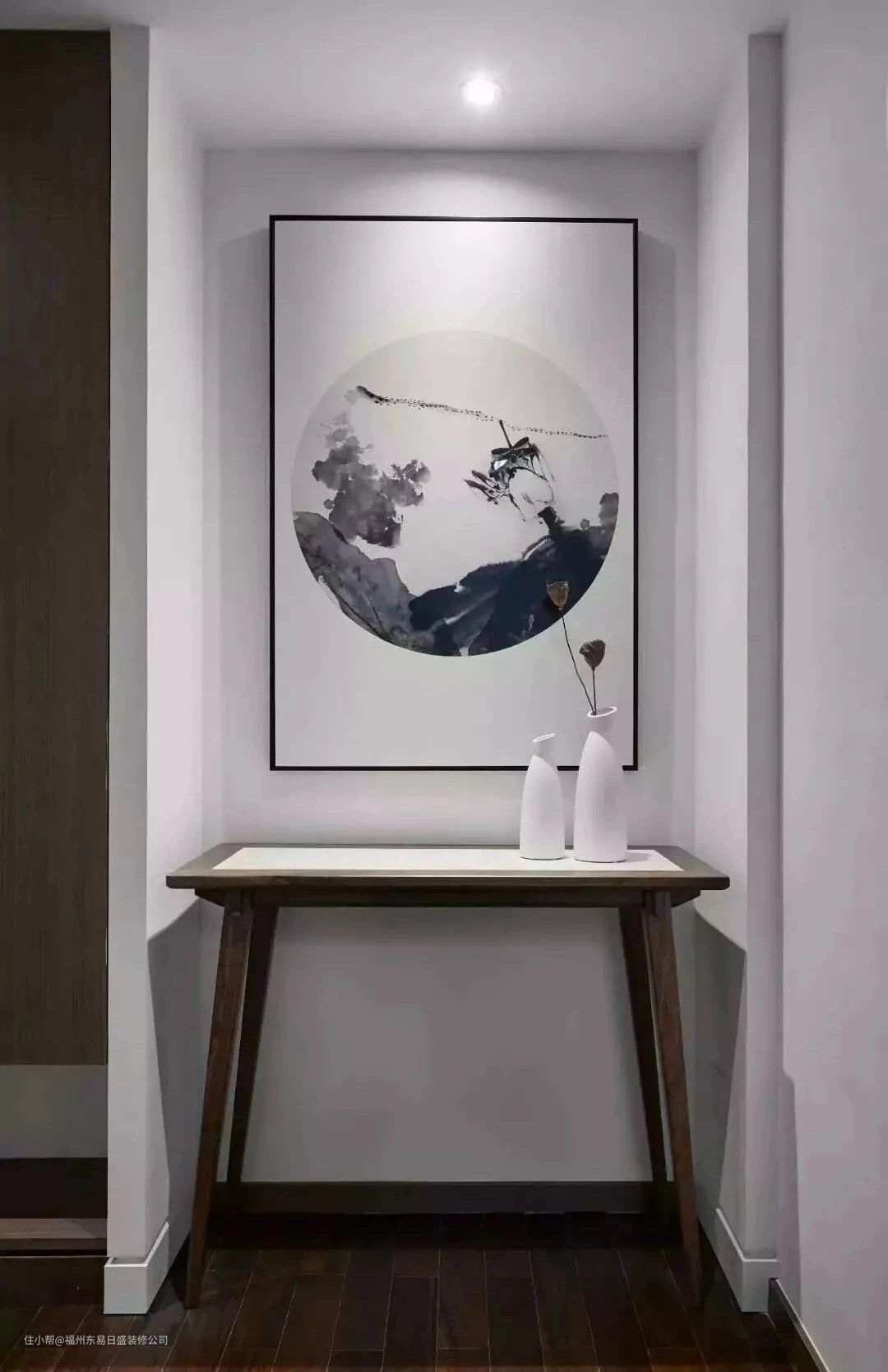中国古代风水专著《青囊序》曰:“一生二兮二生三,三生万物是玄关。”玄关墙搭配圆的造型,象征了圆圆满满,能够给家庭带来清正之气。