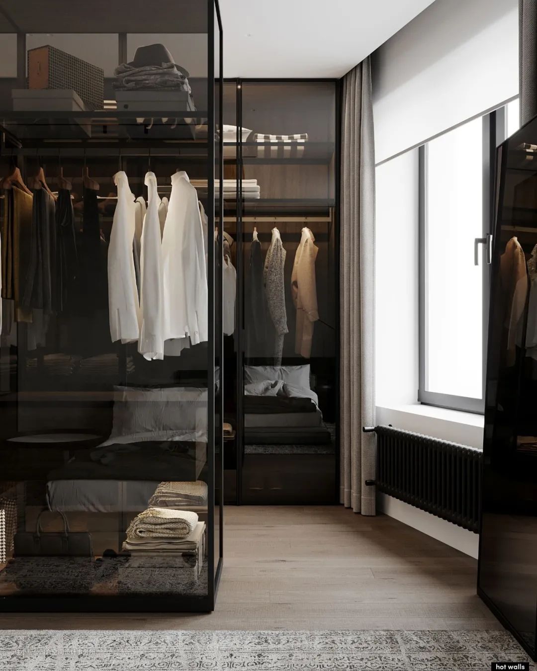 步入式衣帽间,线条利落有致,格局清晰,结构性强,空间质感不言而喻。