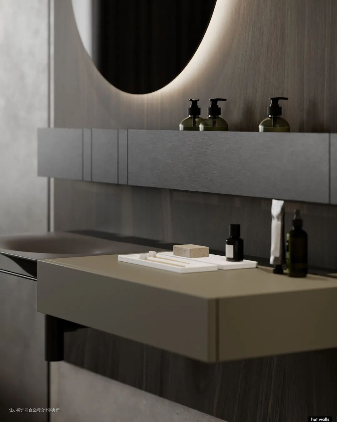卫生间采用水泥灰为主,自然简洁的质感,浴缸,精致的洗漱台,不仅彰显了一种美好、精致的生活态度,还透露出不俗的生活品味。