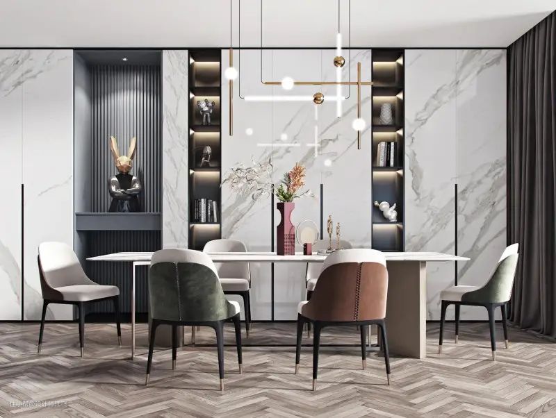 装修中的每个场景的配饰都是前期和软装团队沟通的时候已经确定好的,工厂把这一批配饰运到工地,设计师根据清单进行摆场,调试即可。