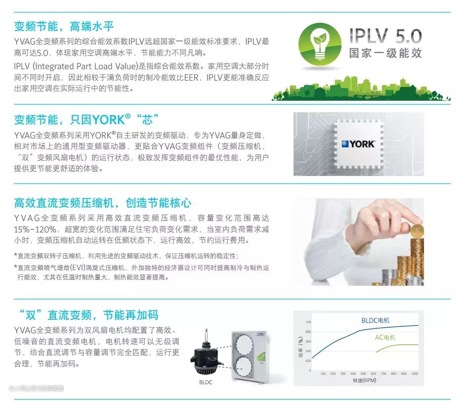 而关于节能性方面,美系有点让人大跌眼镜,曾经我有几个问题一直困扰着我,我们是美国约克的核心经销商,同时我们也代理日系氟系统,相比日系品牌不断更新压缩机技术,日本那种对于能耗、IPLV值的一定要做到全世界第一的那股劲我们还是能看到的: