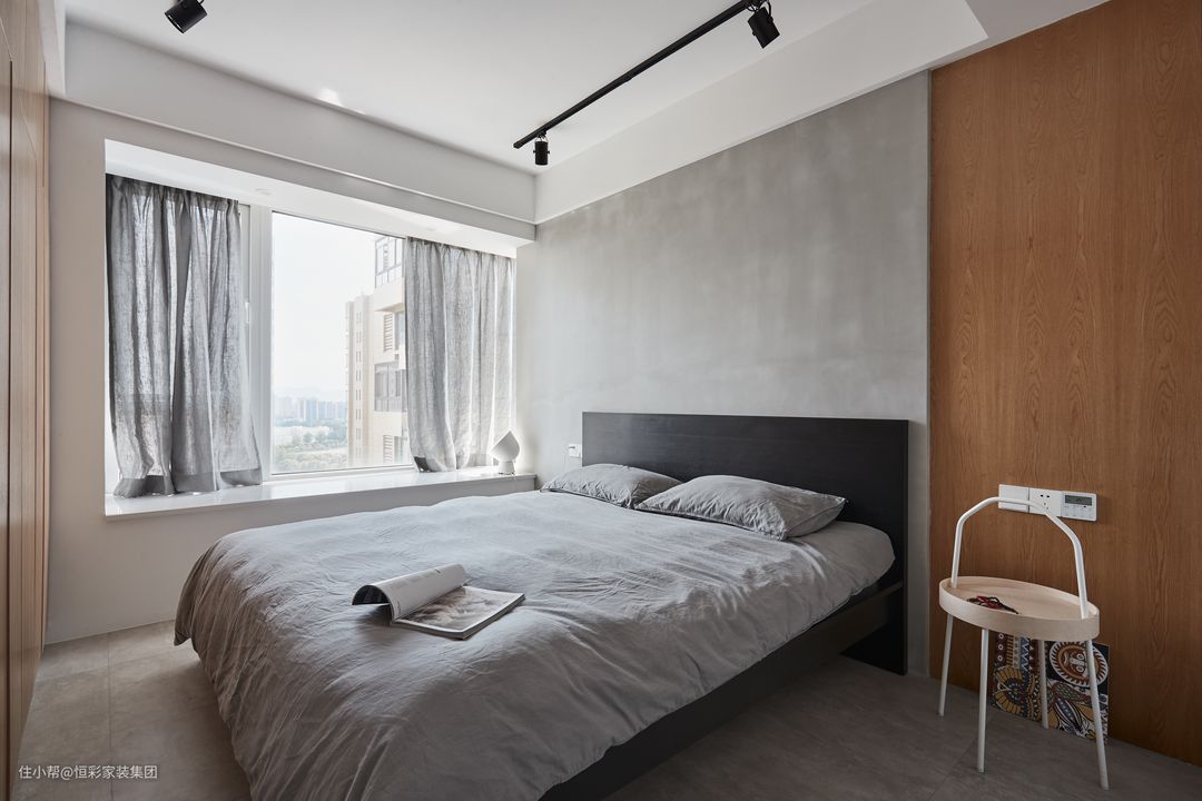 卧室的设计手法依然遵循简单、朴素,以极简的线条和色彩去呈现,通过材质的质感打造,表达简单而又精致的生活。