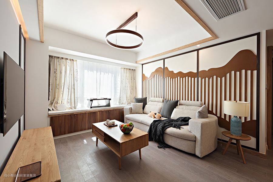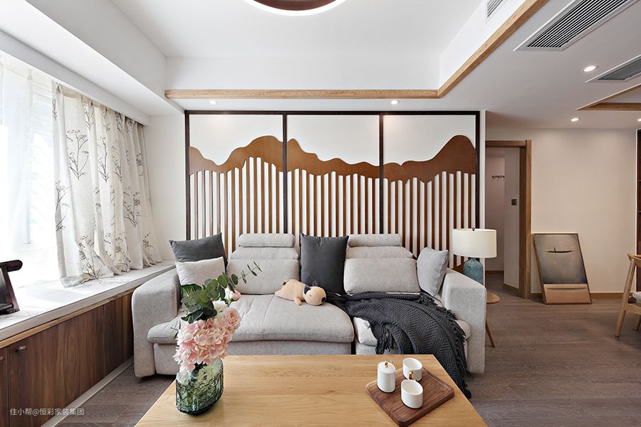 客厅是中式与现代居室风格的碰撞,设计师以现代的装饰手法和家具,结合禅意中式的装饰元素,来呈现亦古亦今的空间氛围。