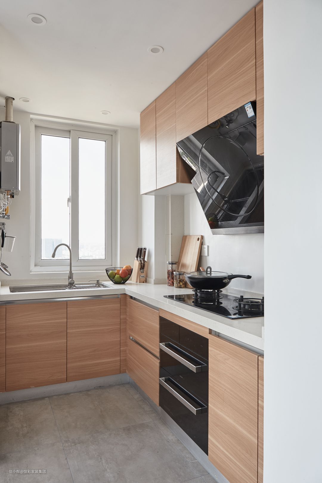 厨房不论是色彩还是纹理都由浅及深,层次分明。通过对颜色的把控,轻而易举地打造出一种精致的高级感。