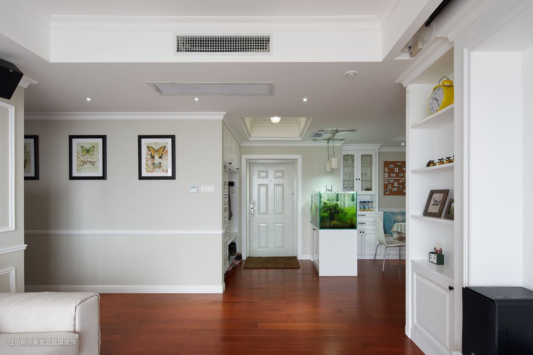 ▲家里的墙面基本都是浅色油漆,点缀特色挂画,清新舒适。入门玄关除了壁式柜,为了增添家里的生气,特意放了一个水箱,水草和小鱼可以增加生活乐趣。