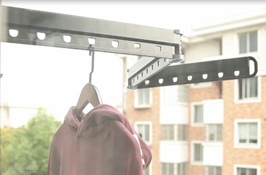 此外,可利用阳台外的区域晾晒。不仅能最大限度的接触阳光还不影响美观。但高层住户要慎用,以及一些小区因不能破坏外立面及小区外观而不可做户外晾晒,因此在加装前要提前确认。
