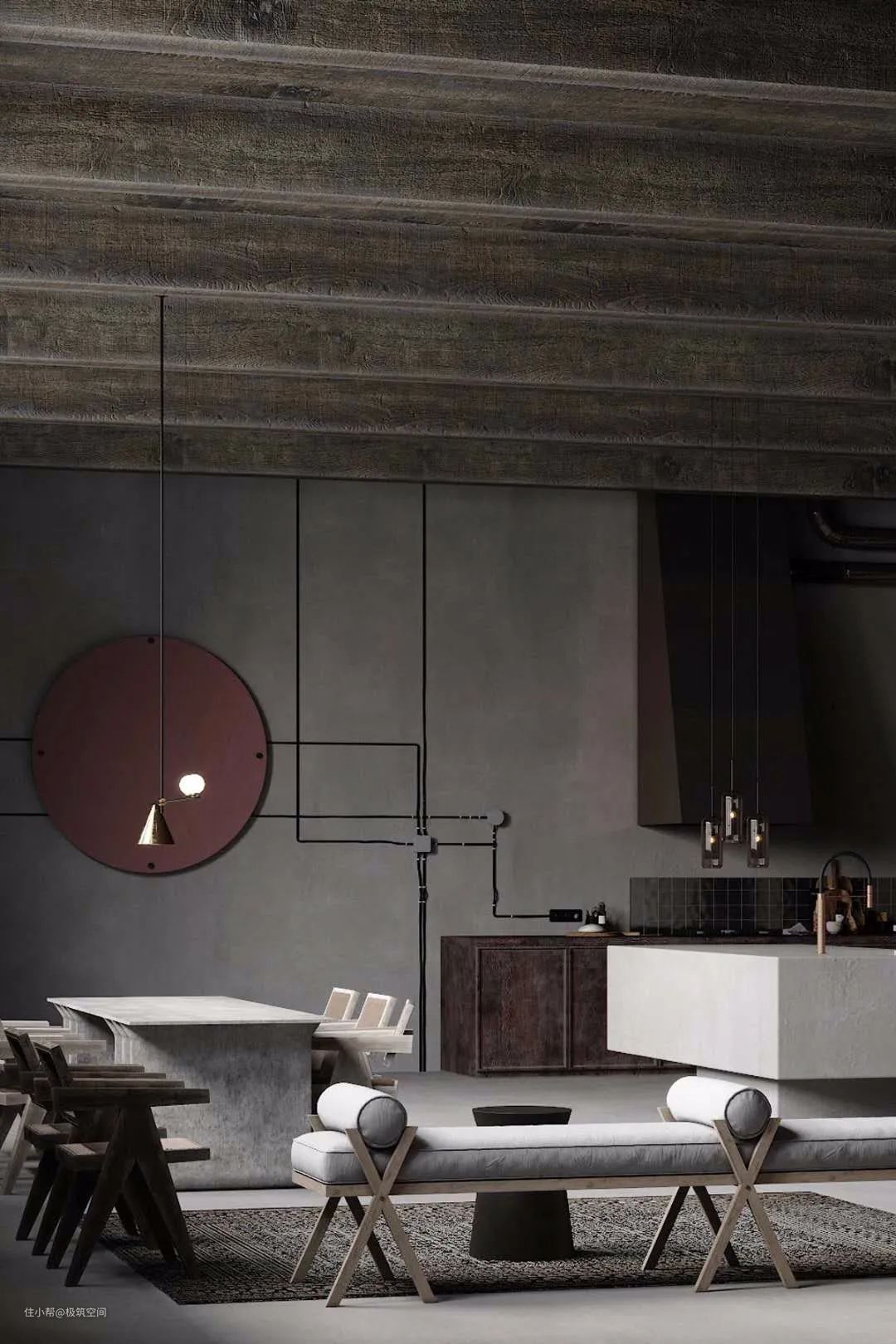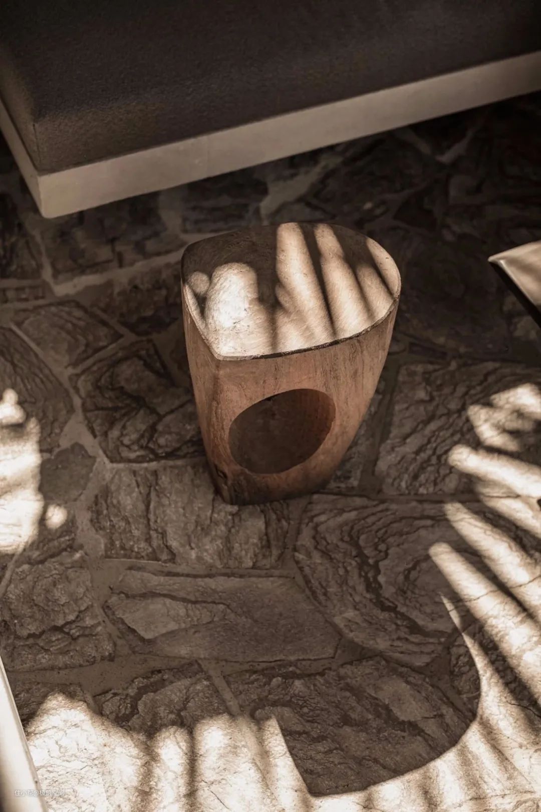 这就是“侘寂”美学,相比世俗定义的价值和美,更注重的是事物本身内在的品质。在“侘寂风”家居风格中,刻意打造材料本身的纹理、质感和形态,甚至是瑕疵。比如木头纹理的桌椅、纹理粗糙的墙壁、石头原型的艺术品,造型十分随意的陶罐,甚至是不去隐藏的电线。