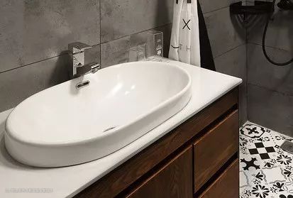 还有这种叫做一体盆,是台盆与台面无缝对接、一体烧制成型,尺寸也能自由定制,很多人宁愿多花点钱,也要选择这种。