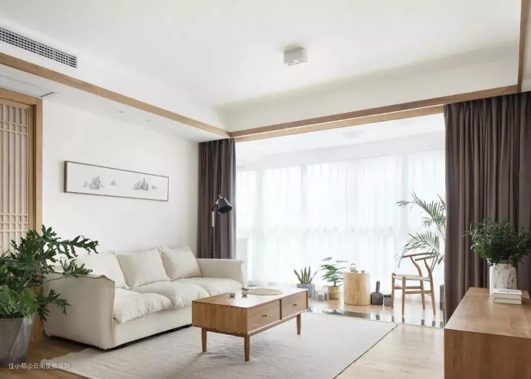 对于封闭式的阳台,往往可以把阳台打通纳入到客厅,成为客厅的延展区,视觉效果瞬间开阔起来,室内采光更加充足。