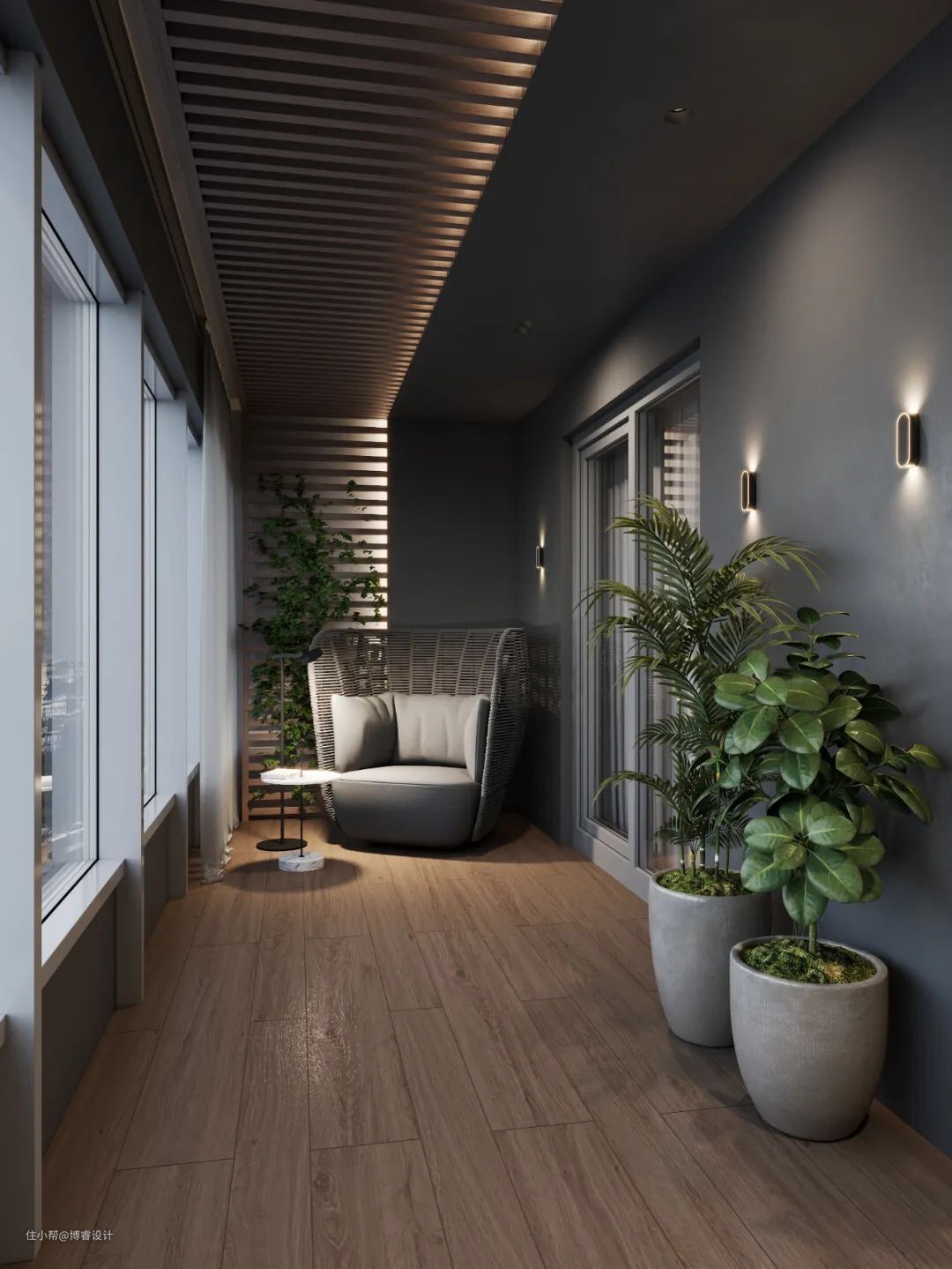 假如一个墙面强调的是整体感,比如是画墙,墙上本来已经非常丰富,我们不需要累赘的元素,那么偏光洗墙的方式是更好的选择。反之,墙面本身是有韵律感的,使用射灯做出均匀的光斑,使光斑与墙面纹理相契合,是更好的选择。