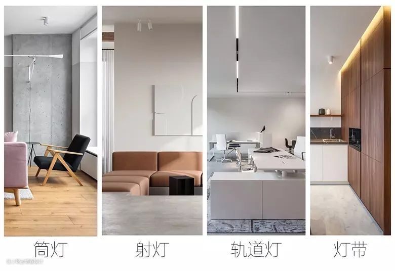 一般指筒灯、射灯、轨道灯、灯带这4种光源。