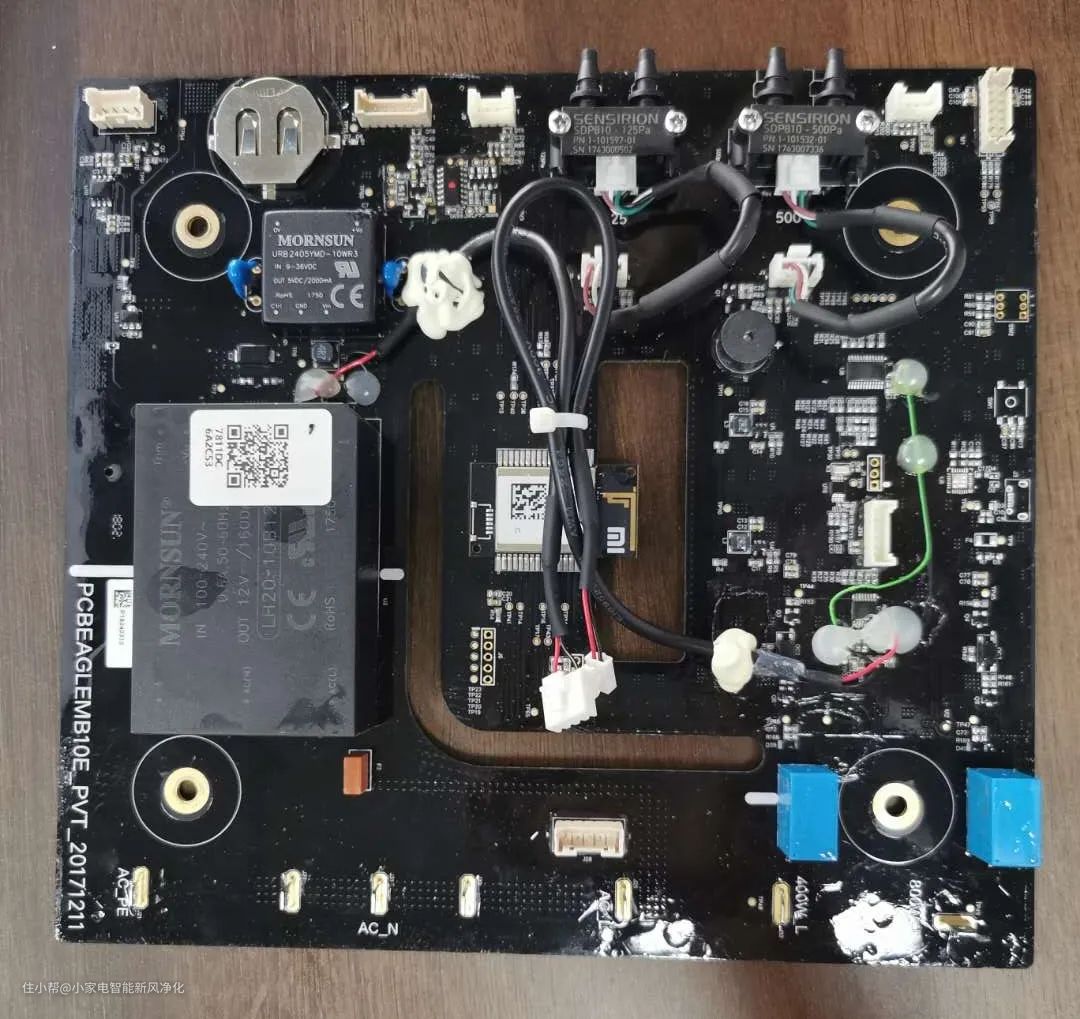电路板:电路板做工一流,有做三防保护。使用的是广州金开阳100-220V宽频电源模块,很少遇到使用宽频电源模块的厂家。两颗盛思锐空气压力传感器,每颗成本约130元,但是为什么用两颗我就没搞懂。上面的钮扣电池格外醒目,漂亮。▼