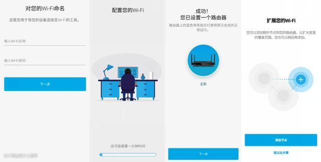 首先将入户网线插入MR9600WAN口,接通电源,手机下载linksys app,根据提示逐步操作即可完成设置。