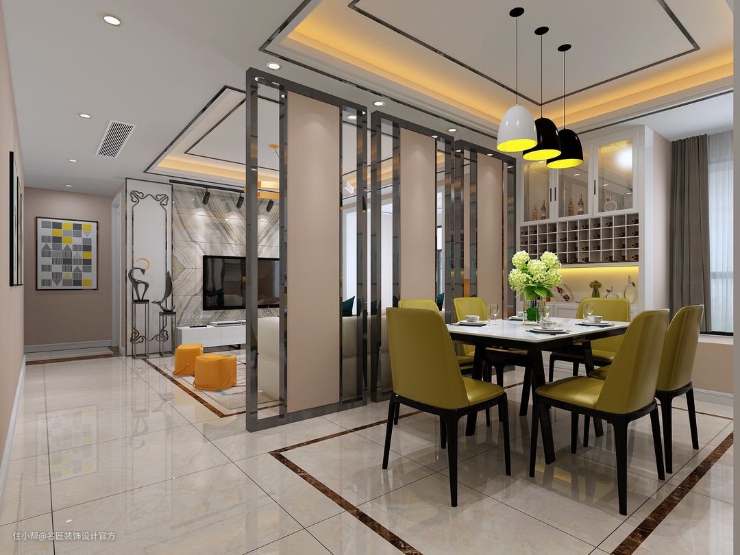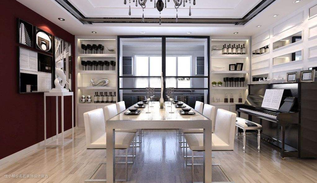 设计在餐厅和客厅一体化的空间,餐厅和客厅隔断,或者餐厅和厨房隔断,餐边柜搭上酒柜一起设计,在生活中比较常见。