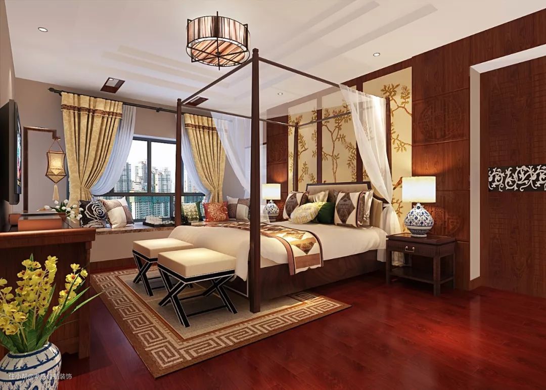 室内布置中也有既趋于现代实用,又吸取传统的特征,在装潢与陈设中融古今中西于一体。