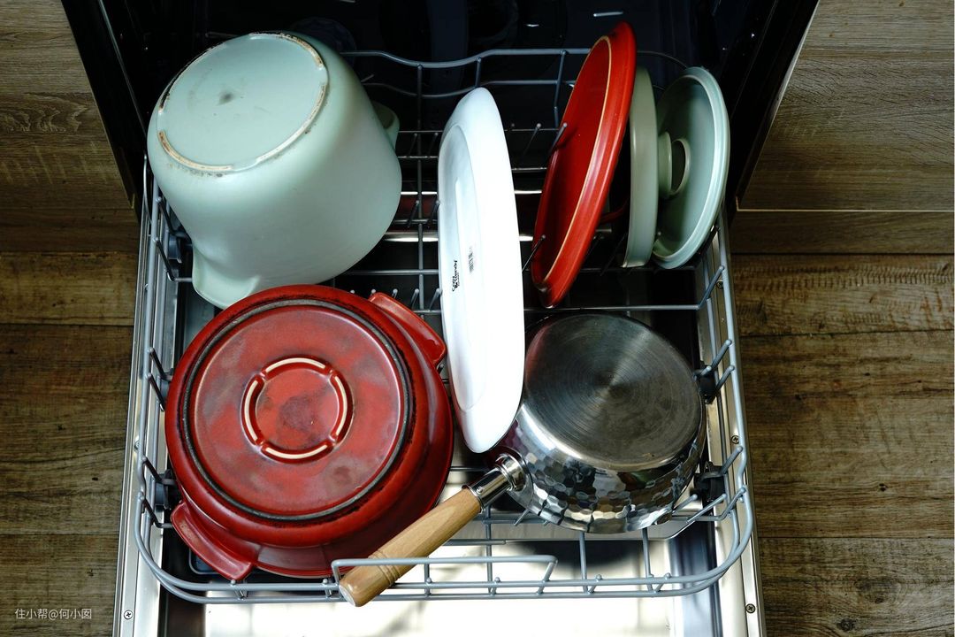 这是一个太多人提过的问题了,有人说洗碗机不能洗锅,干嘛还要买洗碗机,如果你买的是13套洗碗机,不仅能洗锅,而且还能洗好几口锅,毫不夸张的说,如果你跟我一样是锅子爱好者,做一餐饭就霍霍好几口锅的话,也完全不用担心,一次性就可以洗干净,看我这下层就放了一口24cm的大砂锅,一口24cm的大砂锅,一口22cm的砂锅,雪平锅也是22cm的,一个大鱼盘和三个锅盖,很轻松