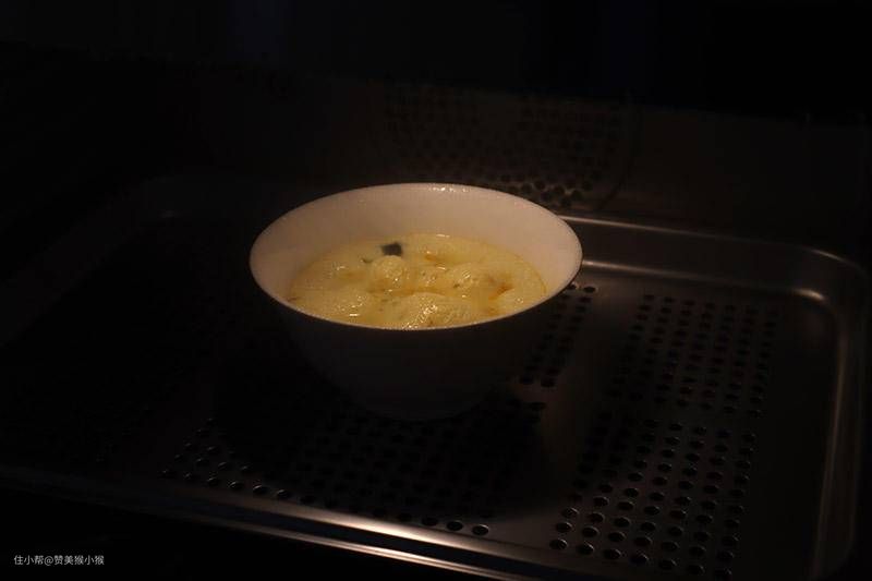 下面来做一道蒸蛋来吃,家里每天早晨都会给孩子蒸一碗鸡蛋吃。但是过节期间就会做这款高配版蒸蛋,蒸三鲜蛋。蒸三鲜蛋虽然易做,但非常讲究火候,时间不够不熟,时间长了易老口感差,所以需要火候把握很重要,而这款烤箱则可以非常精准地控制好制作的过程。