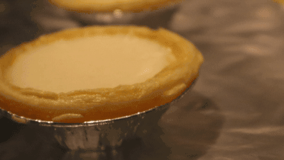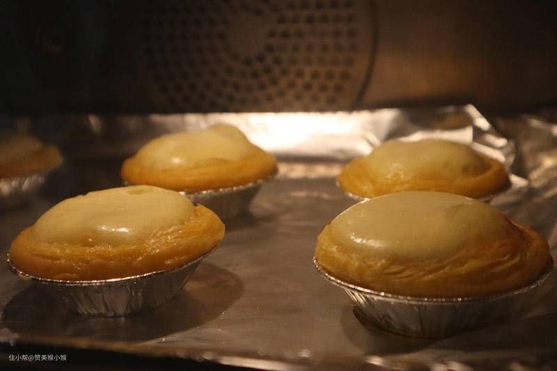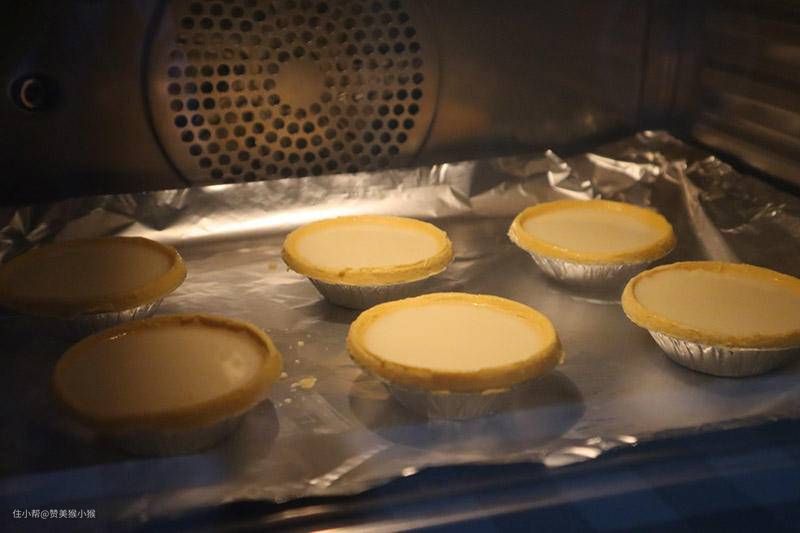 ▲后期蛋液也会呈现膨胀隆起的状态,这时候就表示蛋液差不多要成熟了,时间一到,蒸烤箱自动停止工作,取出蛋挞即可食用。