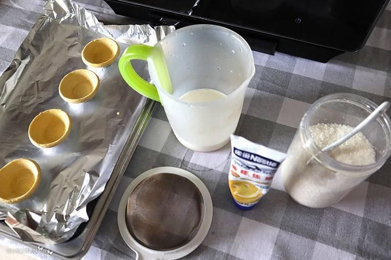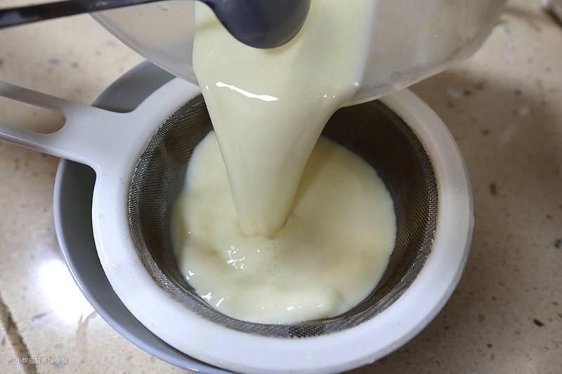 ▲用筛网过滤蛋液,只要多搅拌,就能完全过滤,没有残留,过滤主要是保证蛋液顺滑,这样做出来的蛋挞口感更加顺滑细腻,如果搅拌不够充分,口感就会差些,这是一点小技巧。