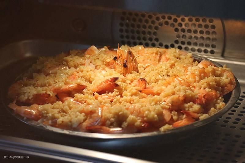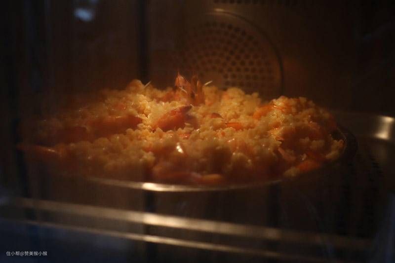 ▲将整盘虾放入蒸烤箱中,选择蒸汽模式,温度设定105℃、时间12分钟,在观察中你就能感受到在蒸汽中,满屋的海鲜味弥漫的整个屋子,并且看着虾慢慢变红变熟的过程。