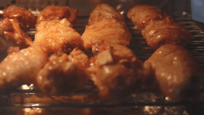 ▲不一会儿,烤箱内的鸡翅鸡腿状态开始逐步由湿到干、再到慢慢冒油,食物的精髓都开始展现,屋子里开始弥漫着香气。