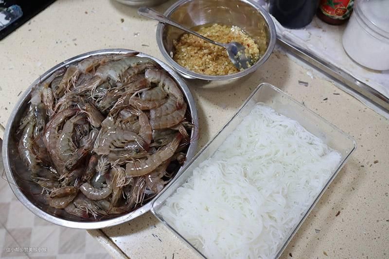 ▲用到的材料有虾、蒜头、米粉以及油、盐、生抽、蚝油。