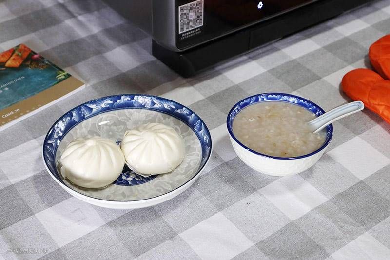 每天起床后先盛起一碗昨晚睡前电饭煲定时煮好的小米薏米杂粮粥,将两个包子放入蒸烤箱,一键打开蒸汽功能,机器马上开始工作。然后就可以给孩子刷牙洗脸穿好衣服,穿好衣服的同时,一份热气腾腾、松软可口的包子已经蒸好,配上杂粮粥吃,就可以开始一天上学了。